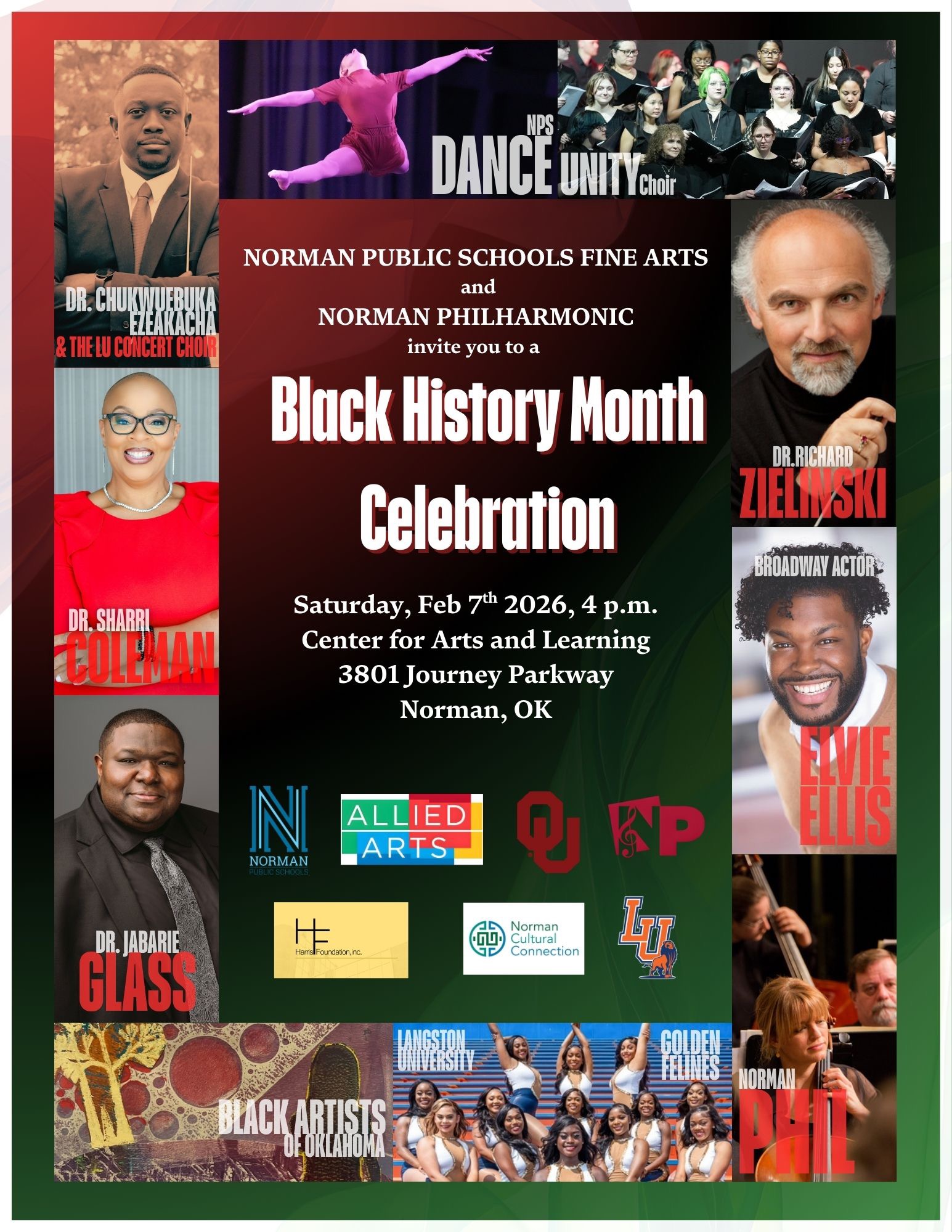 Broadway performer, Elvie Ellis, currently on tour in “Hamilton” joins the Norman Phil, 200 voice Unity Choir, visual arts by Nana K. Hagan, and dance for this collaboration with Norman Public Schools Fine Arts and Langston University in celebration of Black History Month and Dr. Martin Luther King, Jr. Tickets $10. NPS students and staff are free.